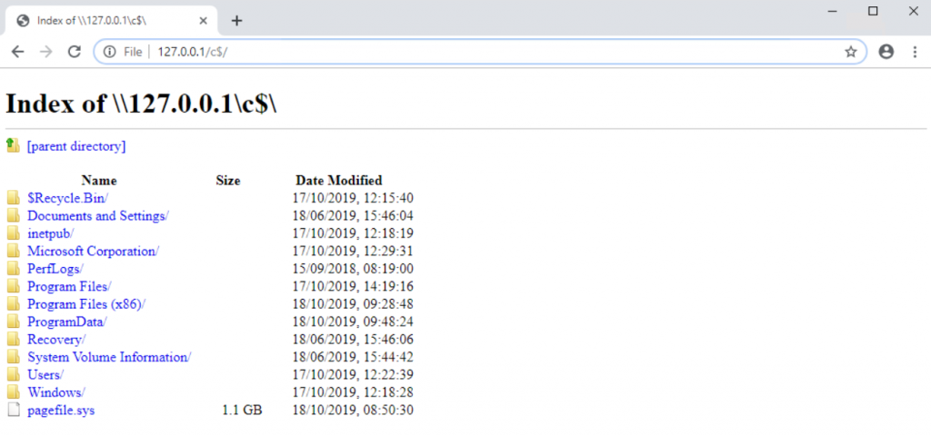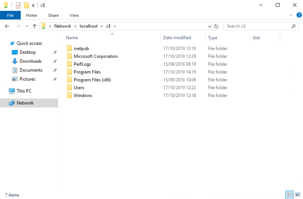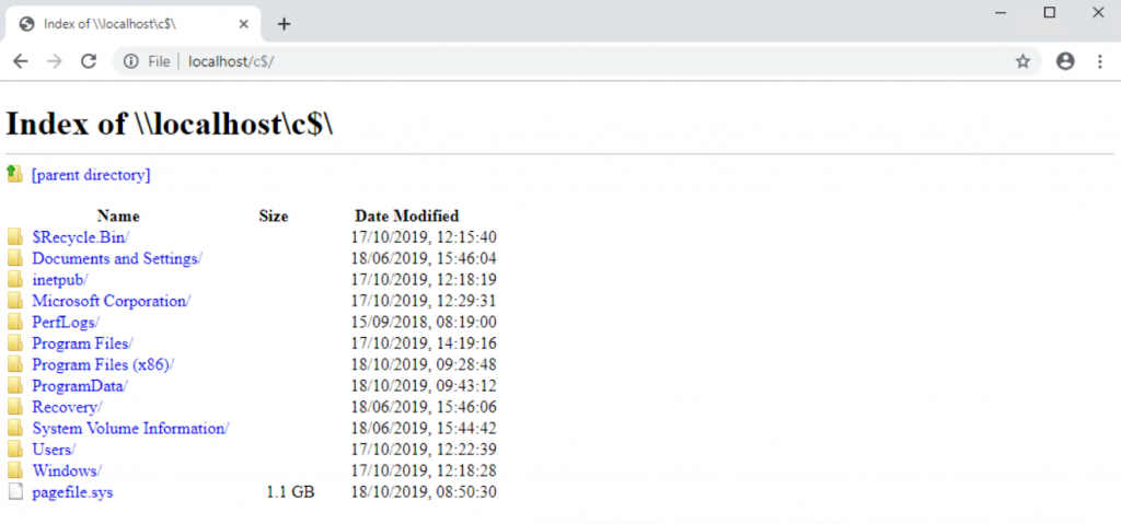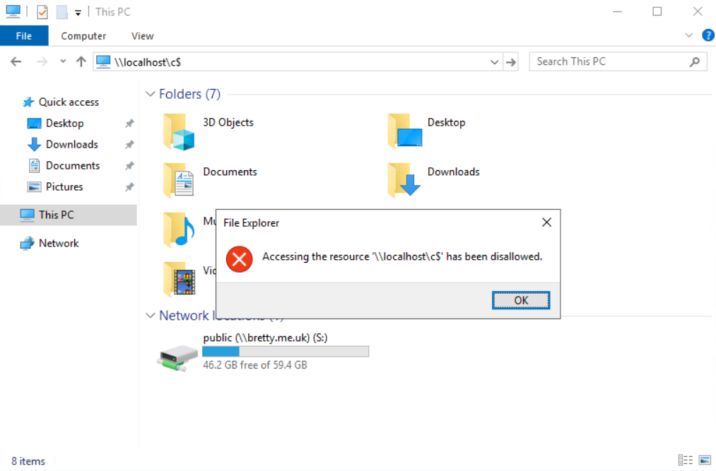 As you can see here – no local drives. Happy days. However, in the address bar type in \\localhost\c$ and see what it does…