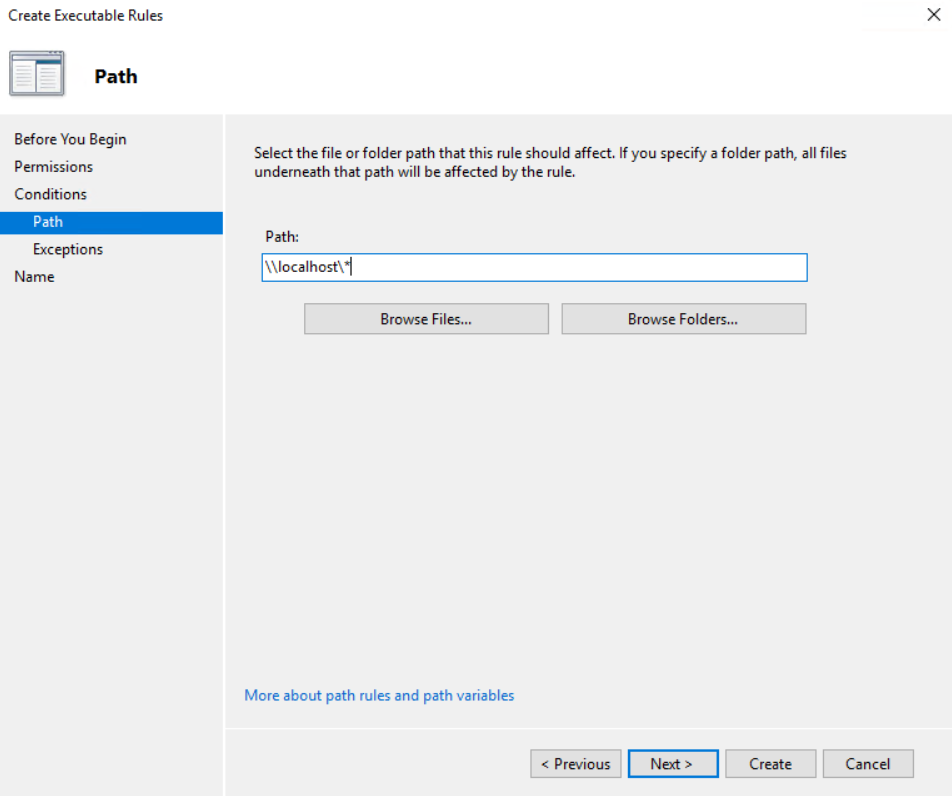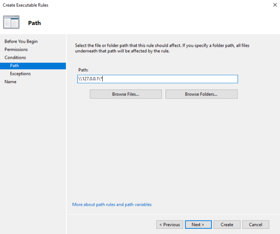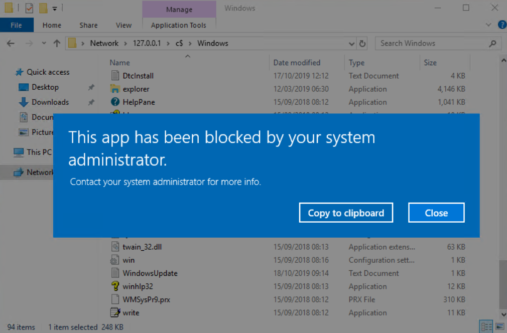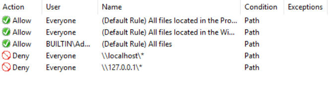 Perfect – so your users can now no longer run applications if they use localhost or loopback. Let’s just make sure that UNC paths still work for valid network shared via explorer