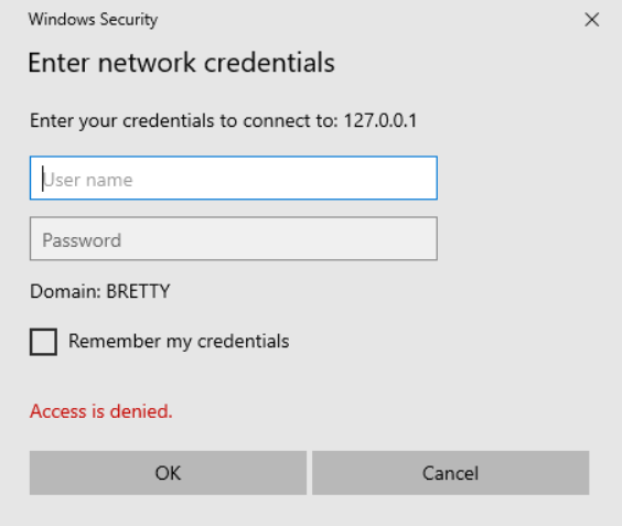 What you will also notice is that if you try to access the loopback address now as a normal user you will be prompted for admin credentials, so another win there.