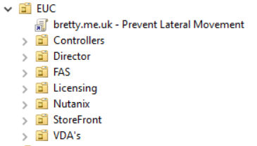 So, with this in mind we should have gone some way in preventing lateral movement across your EUC platform by ensuring that users need to be specific admins for specific components and preventing the overall “Citrix Admins” group.