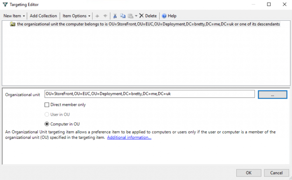 Repeat this task for ALL of your EUC components only selecting the different group name and different OU in the item level targeting. Once done you will end up with a seperate Administrators group for each of your components but filtered on the specific OU.