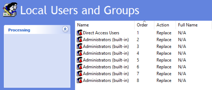 As you can see the Administrators group now only has the LOCAL Administrator account (I will deal with managing this account in a later post) and your new Admin group. We can also know that the “Direct Access Users” group is empty as we are enforcing that via GPO.