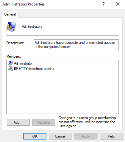 So, now you can go and test that this part is applying correctly. Log into your StoreFront server and refresh group policy using gpupdate /force (make sure you have added your account to the NEW admin group!)