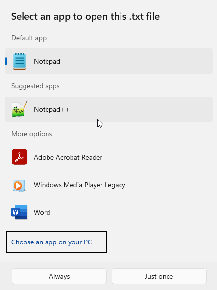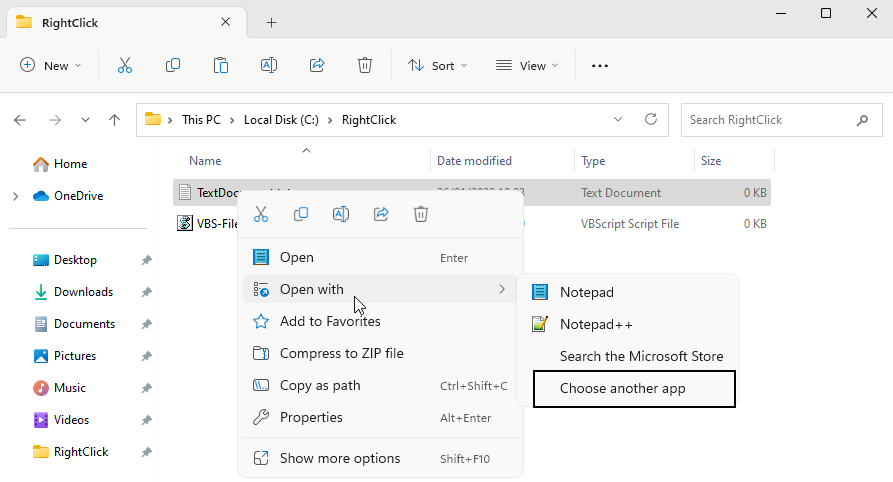 Now if we right-click on the Text Document and select Open With we get the option to “Choose another app”
