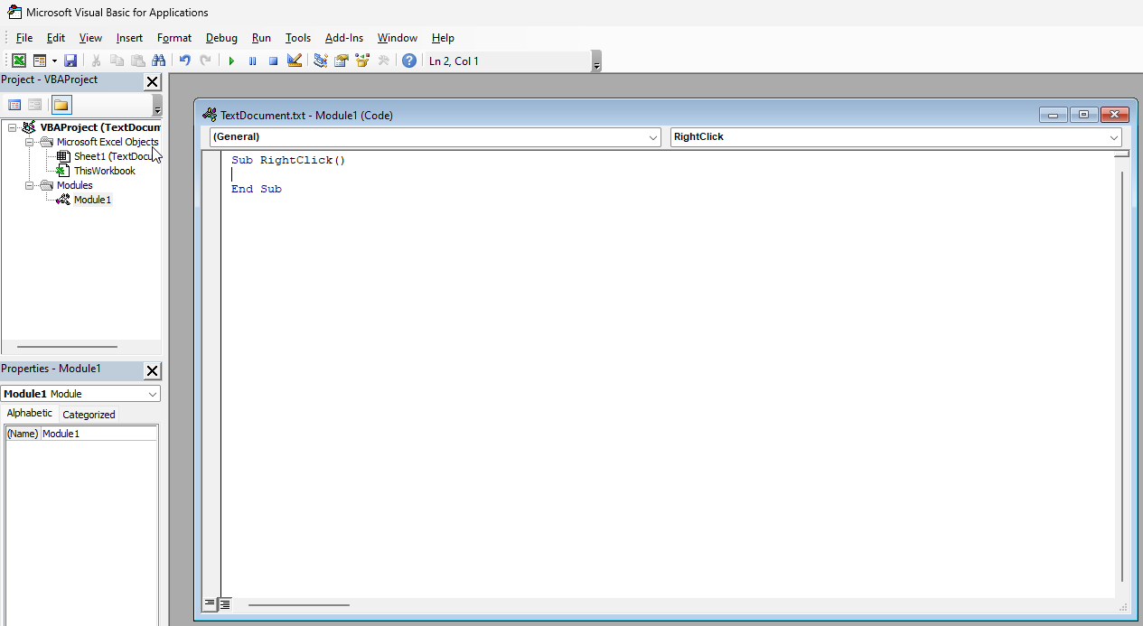 This will give you access to the Visual Basic editor and allow you to write and execute any code you wish, all from opening up a text document.