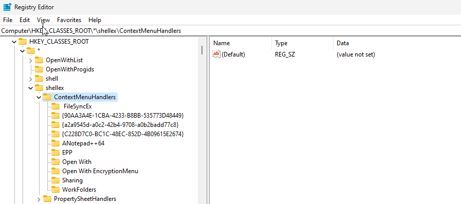 HKEY_CLASSES_ROOT\*\shellex\ContextMenuHandlers