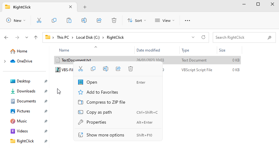 If we log into a Windows 11 machine and open up File Explorer you can see we have 2 files there