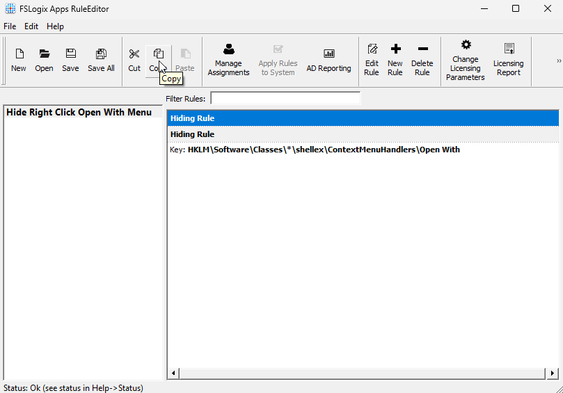 Save and copy the FSLogix rules according to the installation guide for FSLogix above and test as a regular user.